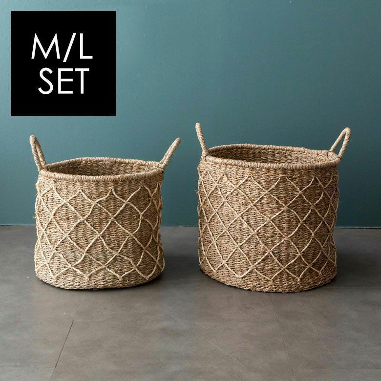 ロープネットデザインのシーグラスバスケット M&Lセット