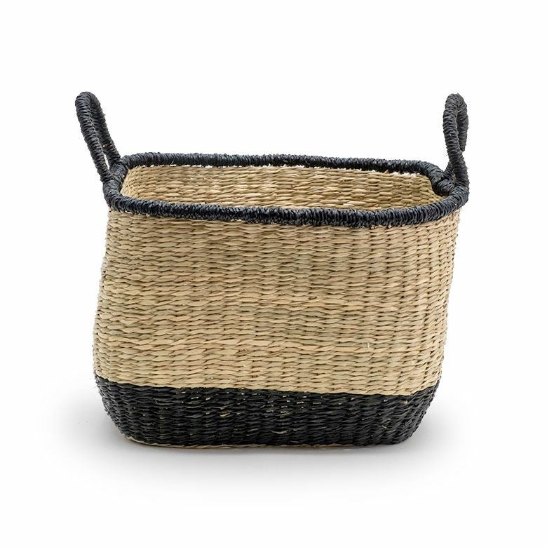 2トーンカラーのハンドル付きシーグラスバスケット L