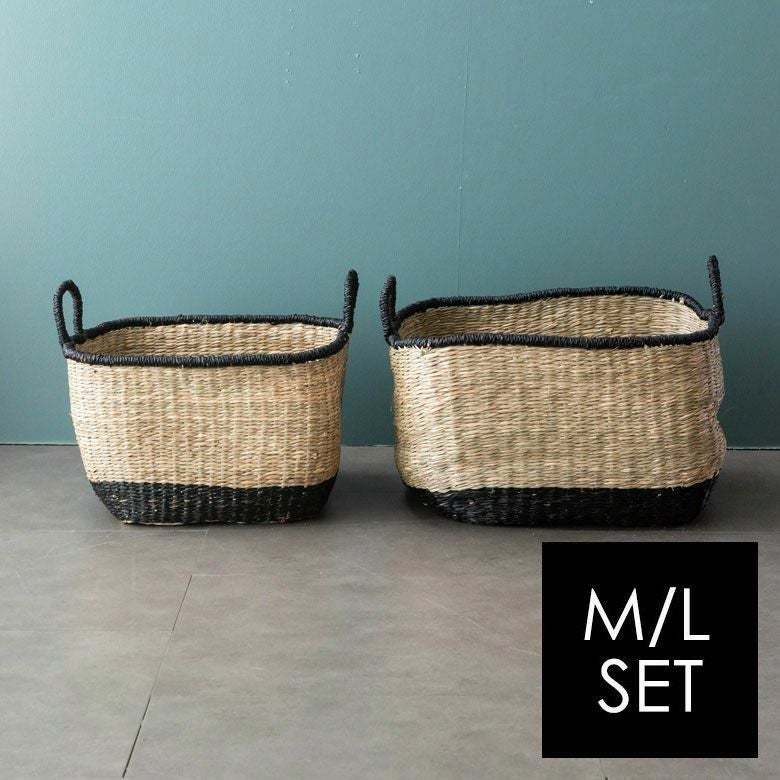 2トーンカラーのハンドル付きシーグラスバスケット M&Lセット