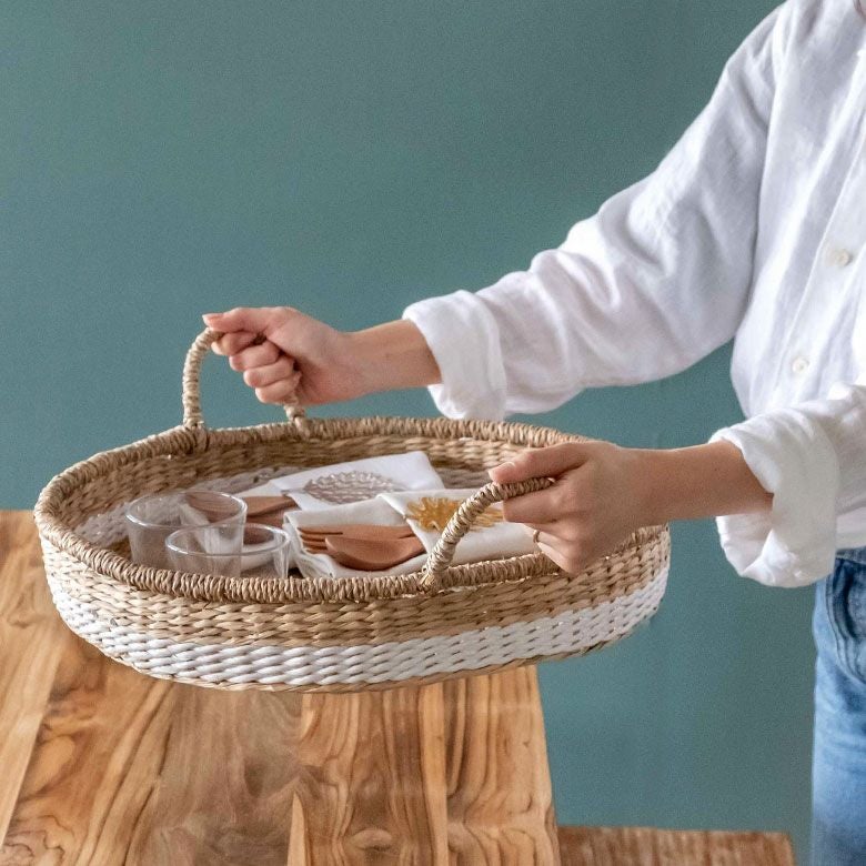 2トーンカラーのシーグラスバスケット・トレイ L
