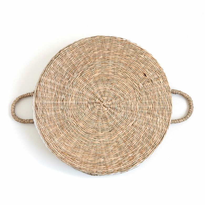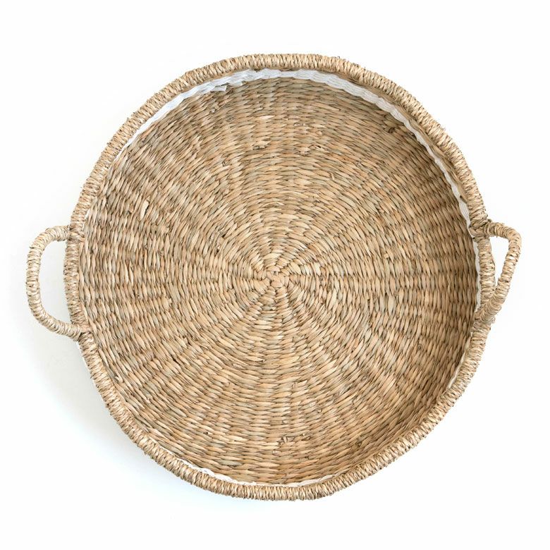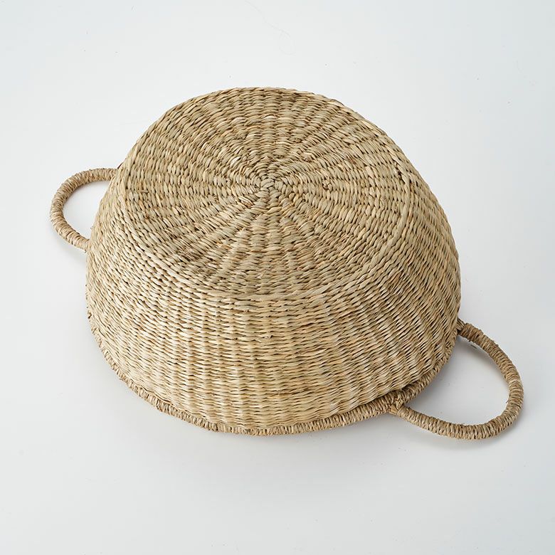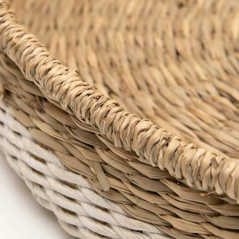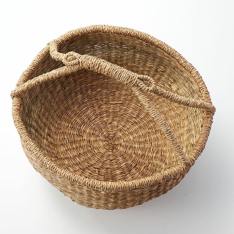 シーグラス製持ち手付き丸型バスケット(ナチュラル)
