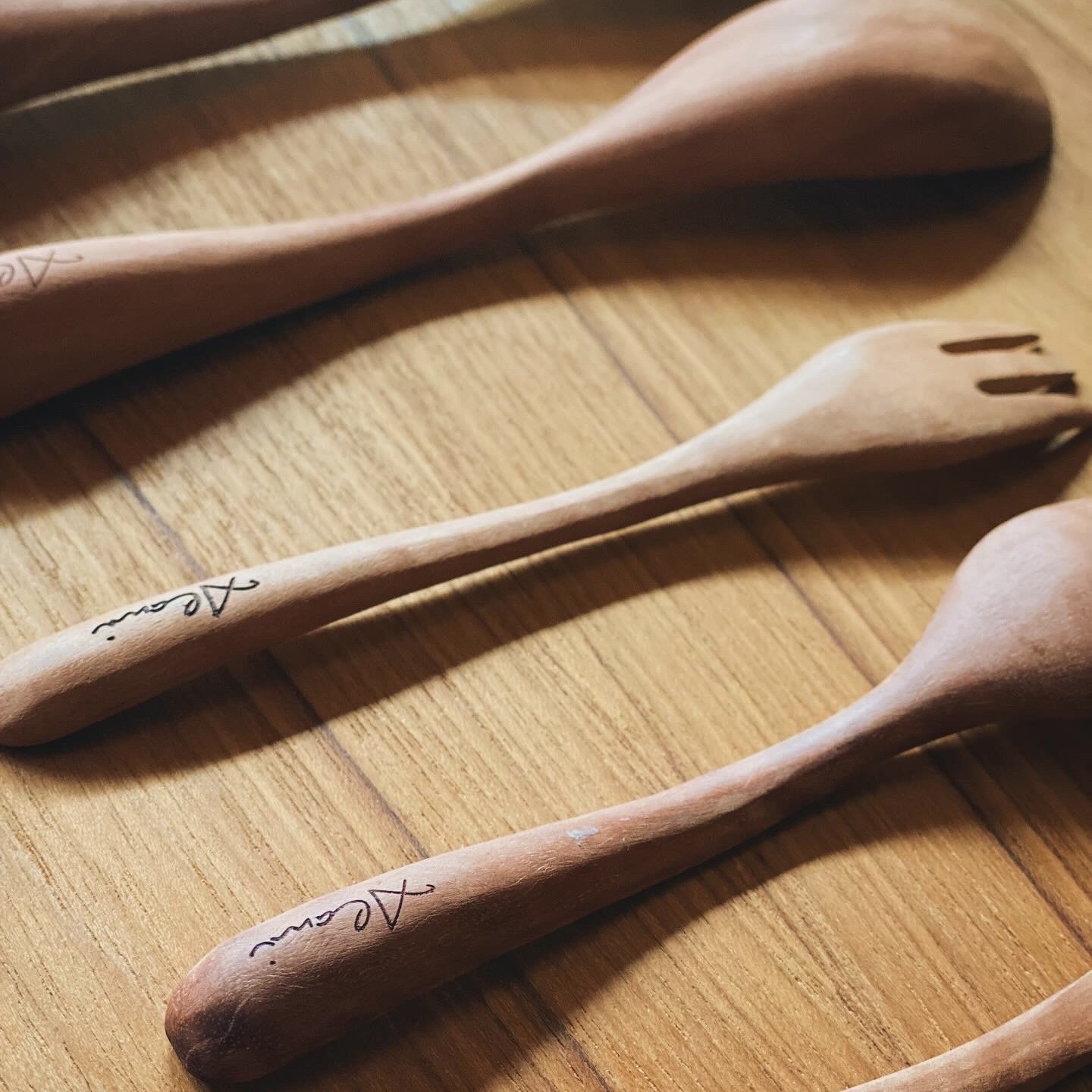 こちらは天然木(ロンガンウッド)のカトラリーベトナムで作られています 無塗装ならではのやさしい質感が魅力です 使うほどに味わいが深まり自然と愛着がわいてきます♡ 背面に印字されたオリジナルロゴ“Alami”はインドネシア …